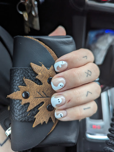 The first person that was taking care of me was very pleasant and warm welcoming, but was having a little trouble shaping my nails(to be fair I can be very picky) and then he had Jen take over and oh my goodness! I absolutely love how they came out! She was able to explain exactly why my nail type was a little difficult, and the coats came out even and her designs are flawless! Her work is amazing and she clearly knows what she is doing! I'm in love with today's set and am not looking forward to when the time comes to redo them🥲